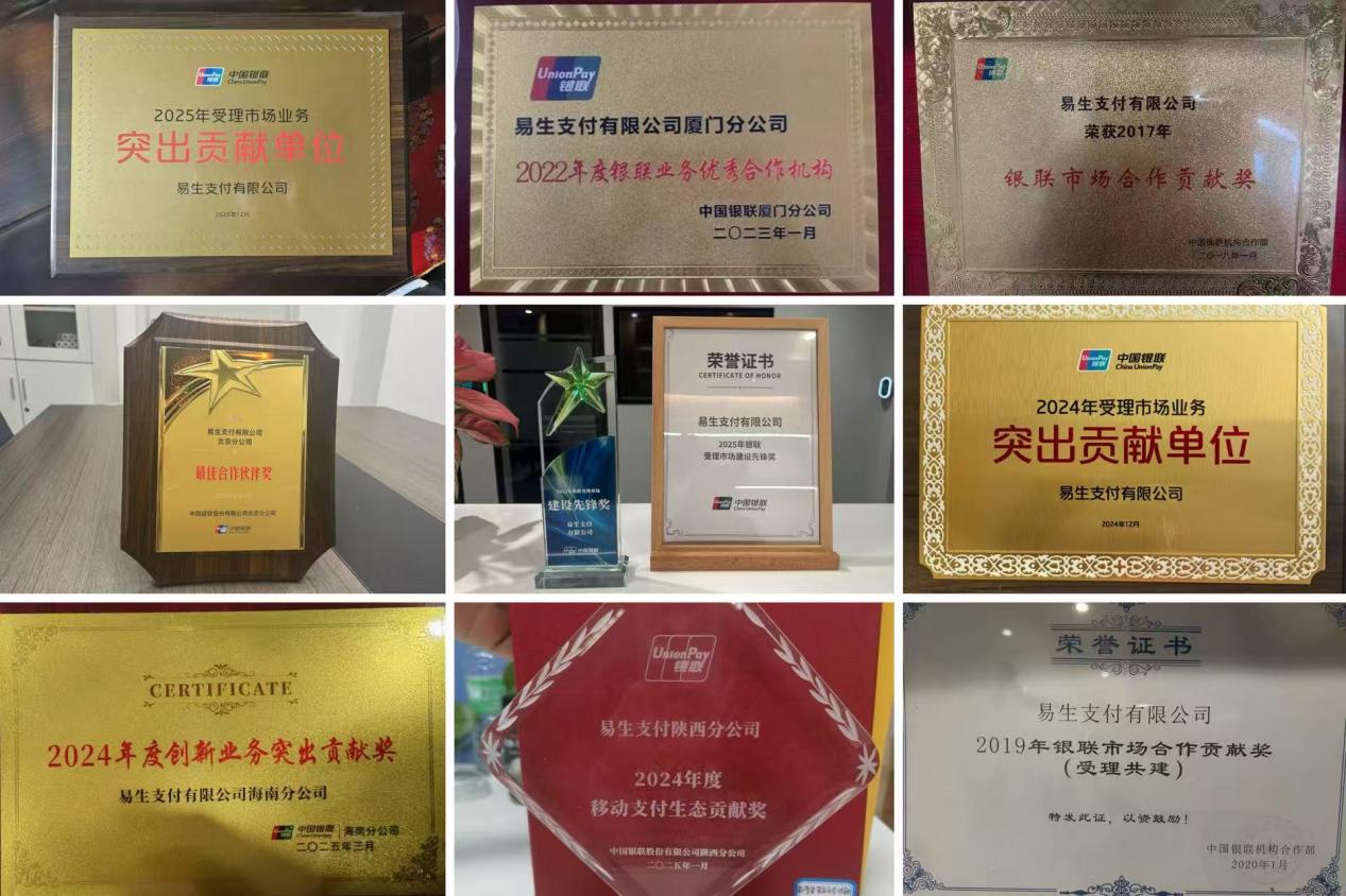 易生支付所获银联部分奖项